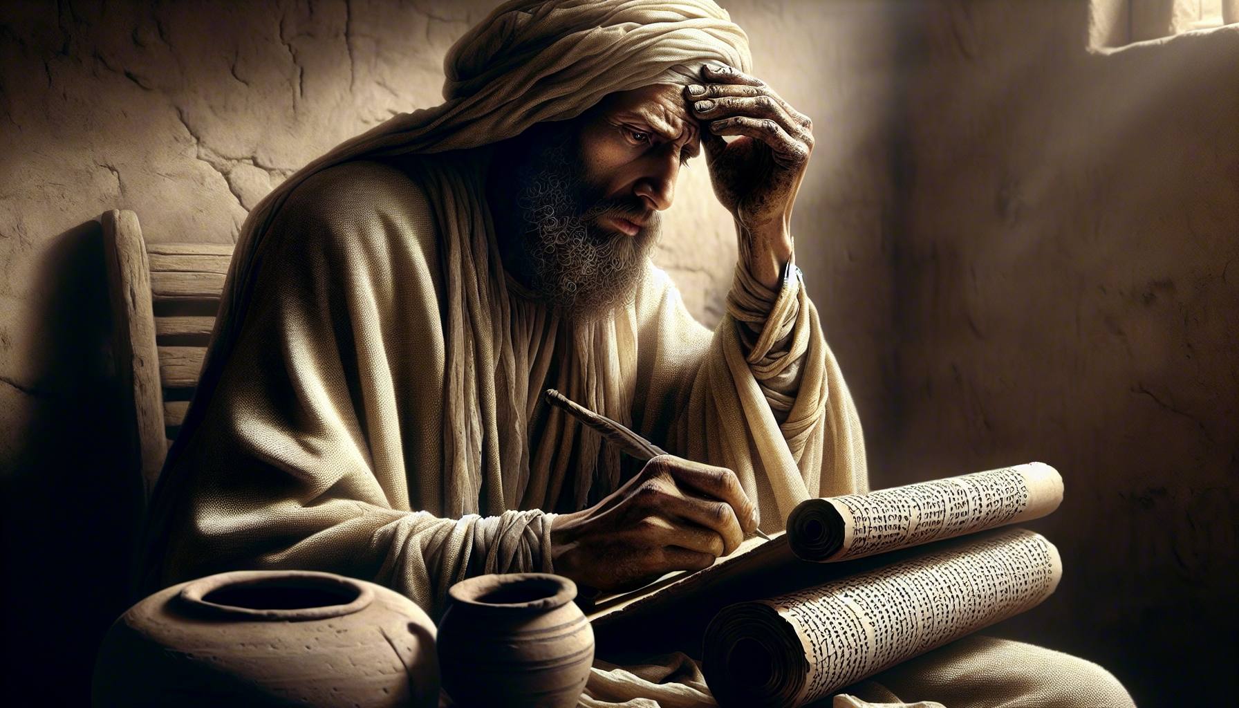 The clay was dry again. The water jar at my elbow stood empty, a faint dusting of desert grit already settling in its belly. I wiped my forehead with the back of a stained hand and stared at the papyrus….