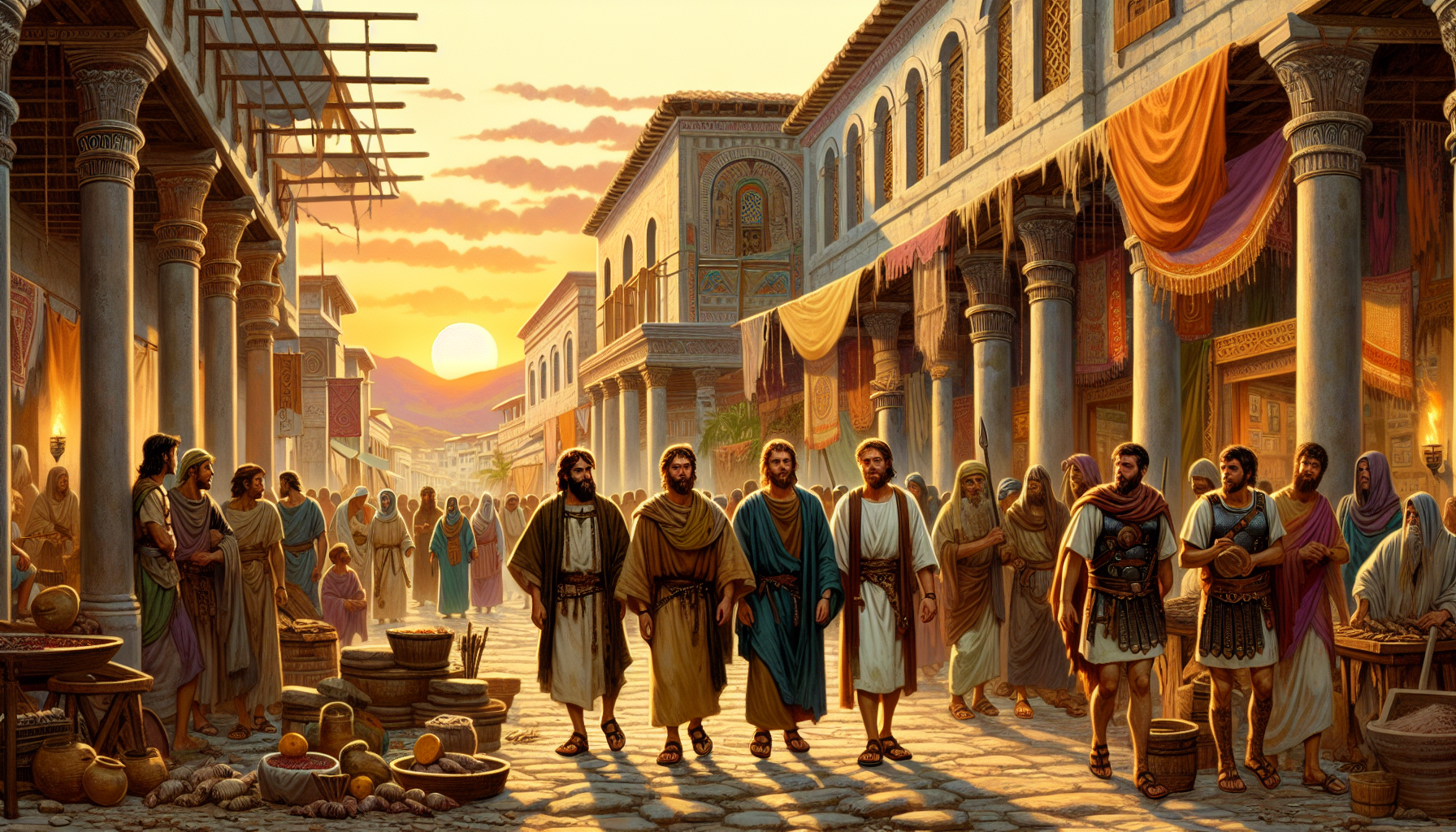 The sun hung low over the horizon as Paul, Silas, and their young companion Timothy approached the bustling city of Philippi. The air was thick with the scent of trade—spices from the East, the tang of salted fish, and the earthy aroma of leather goods. Philippi was a Roman colony, proud of its heritage, where Latin was spoken as often as Greek, and the clatter of soldiers’ armor echoed through the streets.