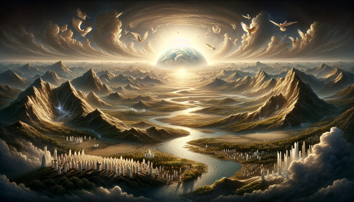 Then the call extends beyond human musicians to the natural world. Let the sea roar, and everything that fills it. Let the world and all its inhabitants join. Let the floods clap their hands. Let the hills sing for joy together. The imagery is deliberate and physical. The sea does not whisper; it roars. The floods do not murmur; they clap. The hills do not stand silent; they sing.