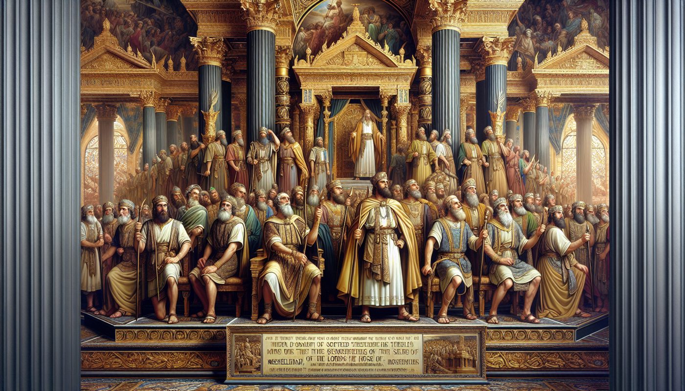 Finally, the chapter records the officers and judges for the outward business of Israel. Of the Izharites, Chenaniah and his sons were appointed for this work. Of the Hebronites, Hashabiah and his brethren, men of valor numbering a thousand seven hundred, had the oversight of Israel beyond the Jordan westward, for all the business of the Lord and for the service of the king. In the fortieth year of David’s reign, the Hebronites were sought out, and at Jazer of Gilead they found mighty men of valor. Jerijah was chief among them. With his brethren, two thousand seven hundred heads of fathers’ houses, David made them overseers over the Reubenites, the Gadites, and the half-tribe of Manasseh, for every matter pertaining to God and for the affairs of the king.