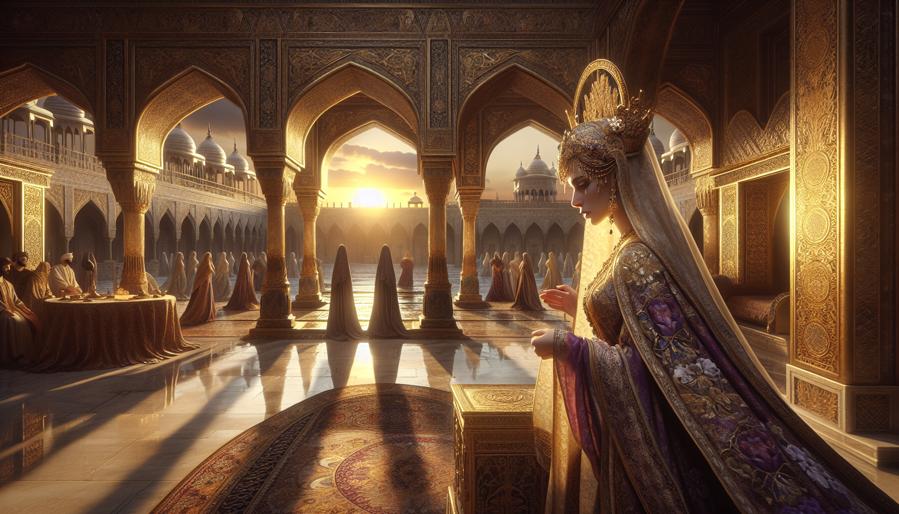 The golden sun hung low over the Persian capital of Susa, casting long shadows across the marble courtyards of King Xerxes’ opulent palace. The air was thick with the scent of blooming jasmine and the distant murmur of courtiers whispering in hushed tones. Inside her chambers, Queen Esther stood before her mirror, her heart pounding like the steady beat of a war drum. Three days had passed since she had resolved to approach the king unsummoned—a crime punishable by death—unless he extended his golden scepter in mercy.