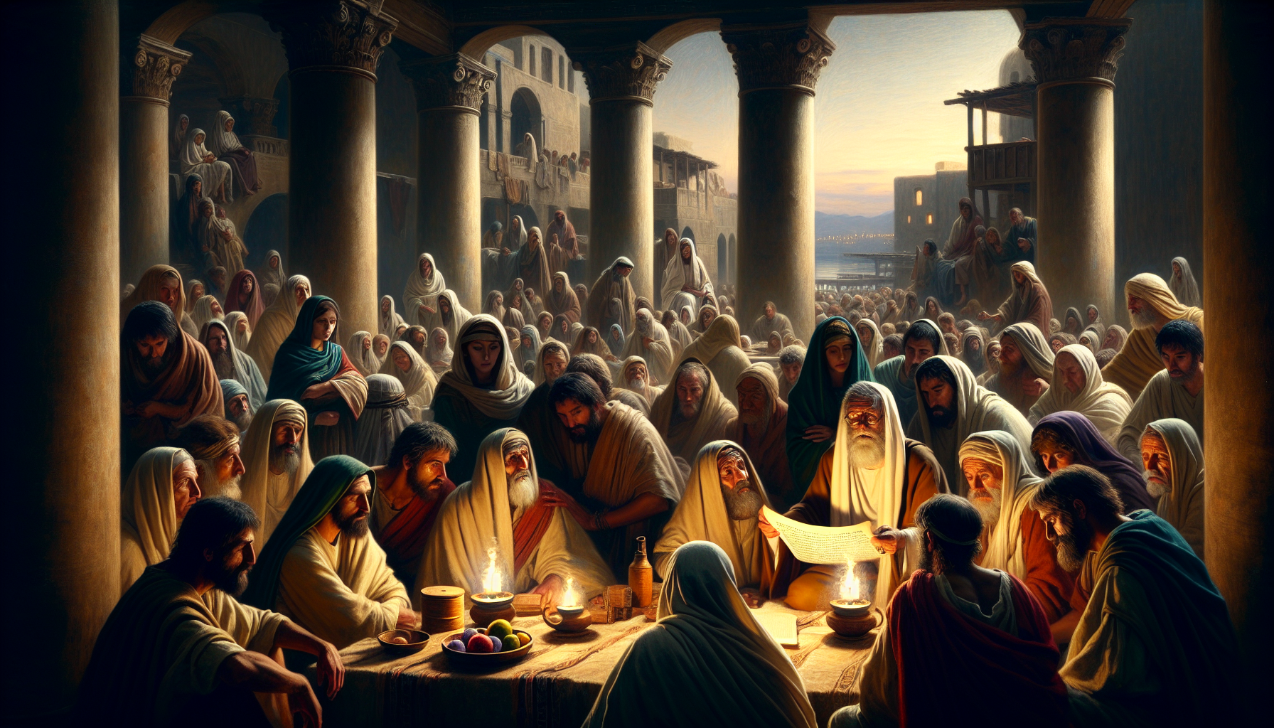 In the days when the early church was scattered like seeds upon the winds of persecution, there gathered in the shadowed corners of a bustling Roman port a small assembly of believers. Among them was an aged teacher named Silas, whose hands trembled not from frailty but from the weight of divine wisdom he carried. The flickering oil lamps cast dancing shadows upon faces marked by both hardship and hope as Silas unrolled a scroll bearing words that would anchor their souls.
