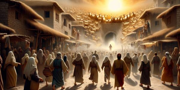 The sun hung heavy and golden over the dusty road leading into the village, its heat shimmering above the packed earth. Jesus walked with his disciples, their sandals kicking up small puffs of pale dust that settled on the hem…