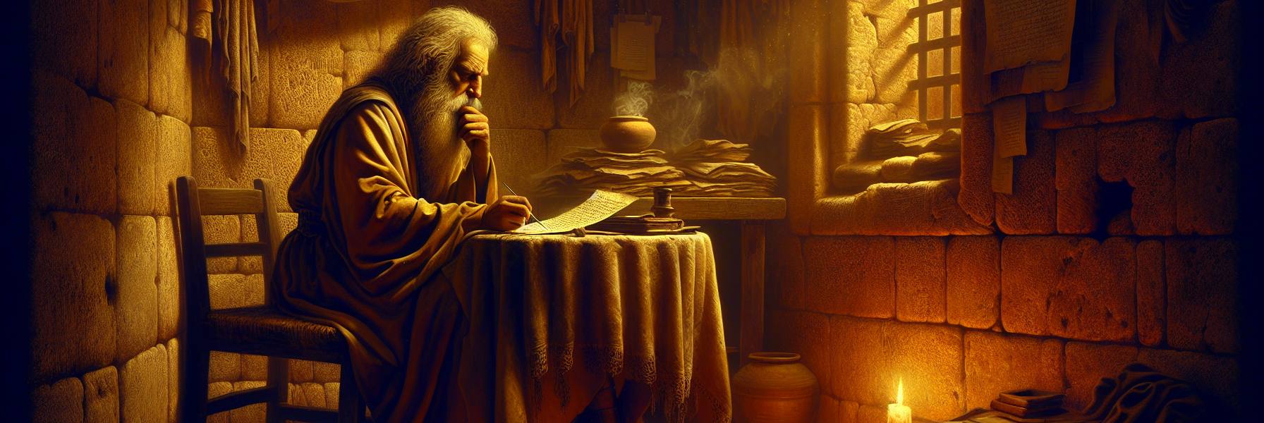 He put the stylus down. The story was told. It was a fragment, a glimpse of a lawsuit in the bedrock of existence. It explained nothing neatly. It offered no easy comfort. It only replaced a small, manageable ignorance with a vast, terrifying knowledge: that the problems of the world run far deeper than human failing, and that the only hope lies in a Judge who is not like the others. The papyrus lay before him, filled. Outside, the world, in all its glorious and terrible darkness, carried on. He blew out the lamp and sat in the dark, waiting for the dawn.