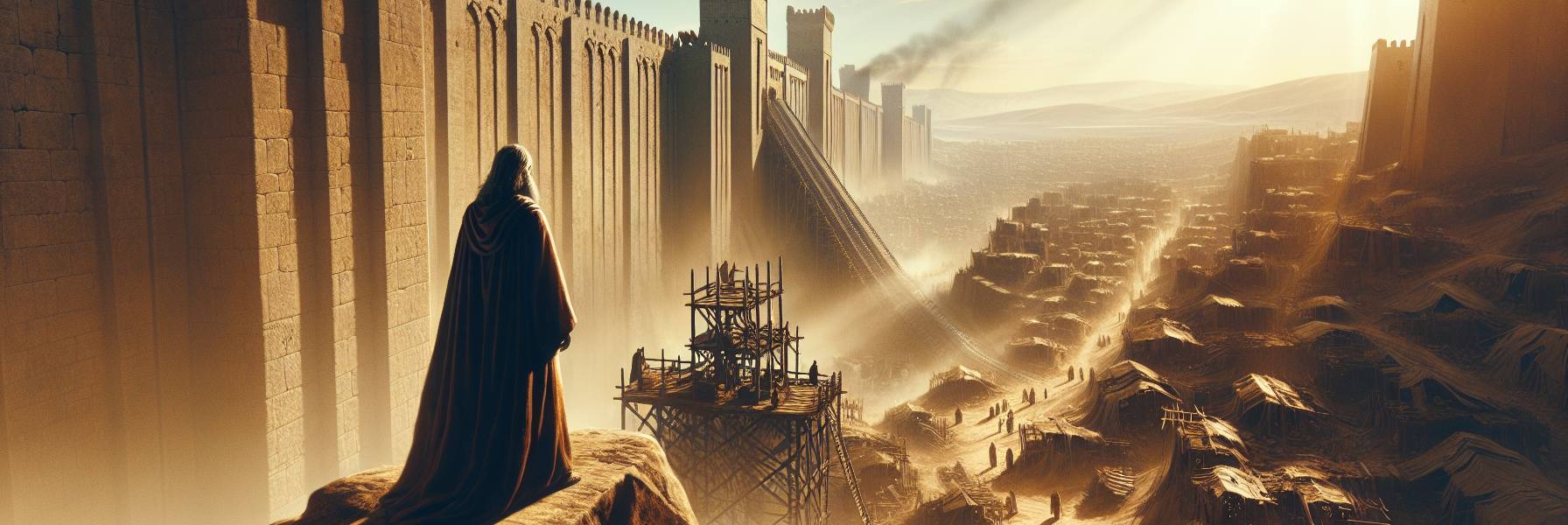 The air in Jerusalem had tasted of dust and despair for months. Not the clean, dry dust of the field, but a gritty, ashen powder that rose from the shattered houses beyond the second wall and clung to the back of the throat. I stood on the rampart, my knuckles white on the sun-warmed stone, watching the Babylonian engineers work. They moved with a terrible, patient certainty. Their siege mounds, those monstrous earthen ramps, had finally bridged the gap between the outer plain and our walls. For eighteen months we had held them. For eighteen months King Zedekiah had clung to the prophet Jeremiah’s words like a man clutching at rotten rope, hearing only the condemnation, never the slim thread of mercy woven within it.