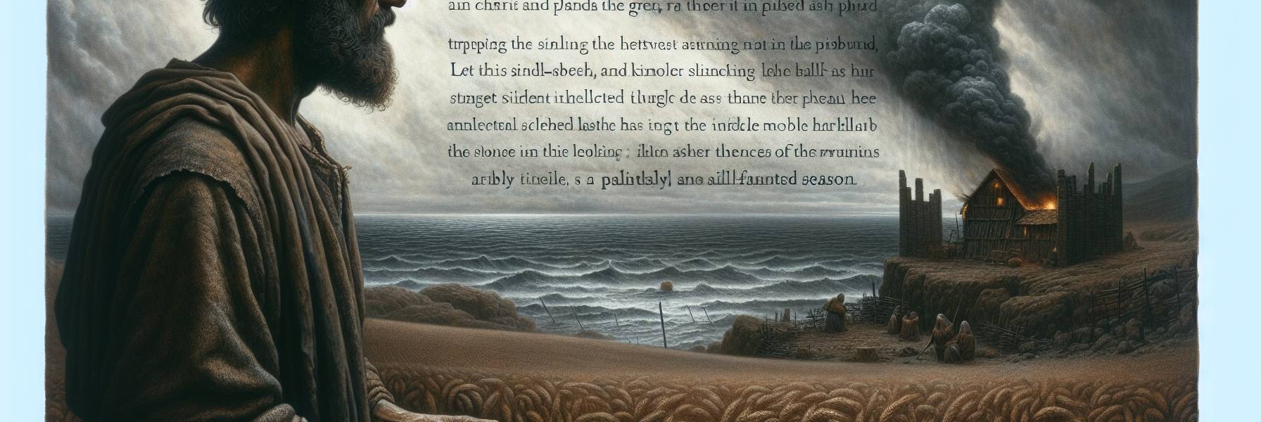 He thought of the words of James, the brother of the Lord, that a traveling preacher had recited in the village square months before. Words that had seemed then like polished stones, beautiful but hard. *Consider it pure joy, my brothers and sisters, whenever you face trials of many kinds…* Joy? Elian stared at his blighted field. Joy felt like a mockery. The faith he had, a simple, inherited trust in the God of Abraham, felt like a dry well.
