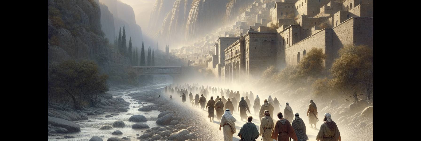 Jesus walked ahead, as he often did, his pace steady but unhurried. The usual chatter of the twelve had settled into a weary quiet, broken only by the crunch of gravel and the distant, perpetual roar of the springs that burst from the rock below the city. The air was different here. It smelled of damp stone and pine, and carried a chill that the Galilean sun never knew.