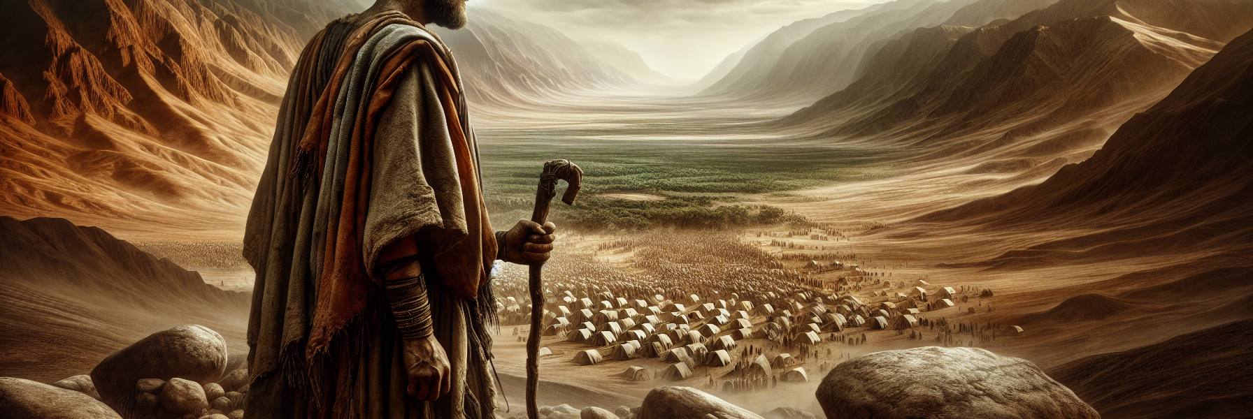 The dust of mourning still hung in the air, a fine, gritty taste that seemed to have settled permanently on the tongue. It clung to Joshua’s robes as he stood alone on the barren rise, looking west. Behind him, the vast, weary camp of Israel sprawled across the plains of Moab, a murmuring sea of tents and tired souls. Before him, beyond the deep, green slash of the Jordan Valley, the land rose into rugged hills, amber and grey in the late afternoon light. That was it. The Land.