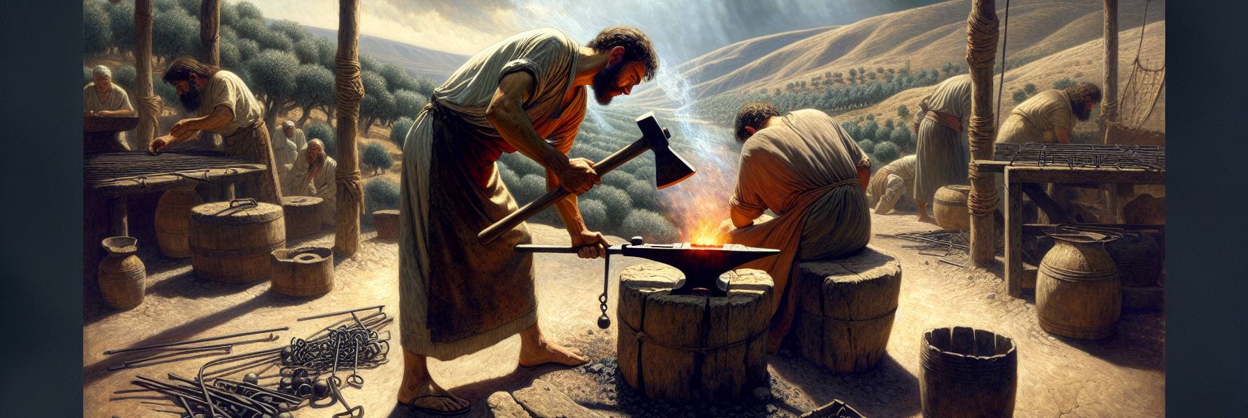 The heat was a living thing in the valley that day. It rose from the pale, cracked earth in shimmering waves, making the olive trees on the ridge seem to tremble like mirages. Micah, his tunic sticking to his back with sweat, worked the bellows of his father’s forge, the charcoal heart of the fire flaring with each gasp of air. The smell of hot metal and dust was a familiar cloak.