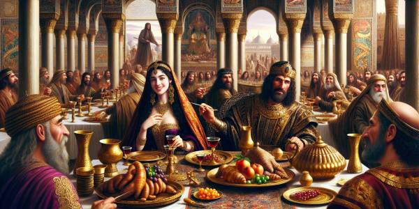 The air in the king’s private banquet hall was thick, heavy with the scent of spiced wine and roasted meats. It clung to Esther’s robes, a perfume of opulence that did nothing to calm the cold knot in her stomach….