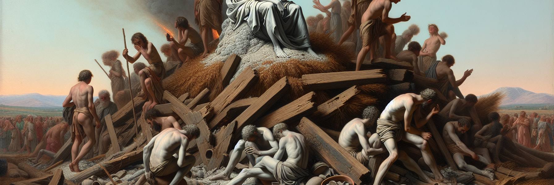 The ash was never just ash. It was the fine, greasy residue of everything that had burned—the straw of my barley, the cedar beams of my storehouses, the wool of my flocks. It clung to my skin like a second mourning garment, gritty in the folds of my elbows, a constant taste of defeat on the wind-dried cracks of my lips. I would sit in it, by the heap of shattered pottery that was my only throne, and remember.