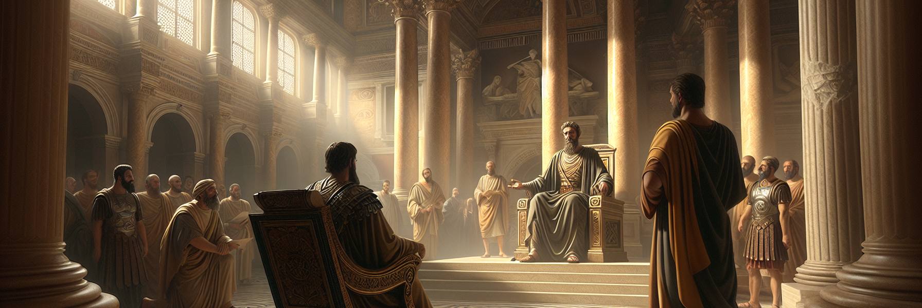 The air in Caesarea held the peculiar stillness of a place built to impress rather than to live. Sea-breeze, usually crisp off the Mediterranean, felt sluggish as it wandered through the grand marble porticos and administrative squares, carrying with it the scent of salt, dust, and slow bureaucracy. In the cool, shadowed hall of the Praetorium, the Roman governor Felix shifted on his ivory-inlaid chair. The hearing felt less like a dispensation of justice and more like a tedious piece of provincial housekeeping.