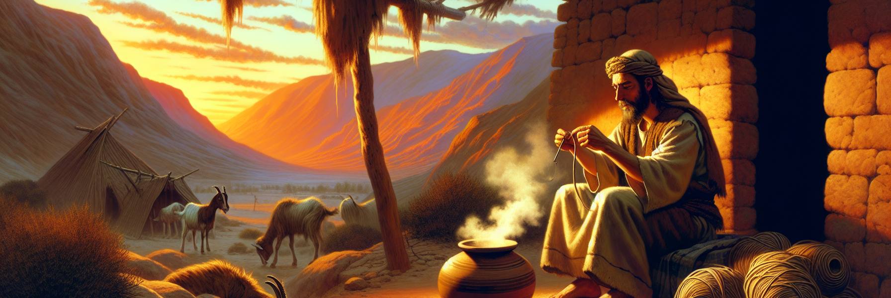 The heat of the day was finally beginning to soften, lengthening the shadows of the goat-hair tents into strange, stretched shapes across the floor of the wadi. Caleb sat just inside the entrance of his dwelling, the smell of dust and thyme heavy in the air. His fingers worked a piece of cord, the repetitive motion a comfort. His mind, however, was not on the task. It was on his neighbor, Elidad, and the empty space where a clay storage jar, broad-bellied and sealed with wax, should have been.
