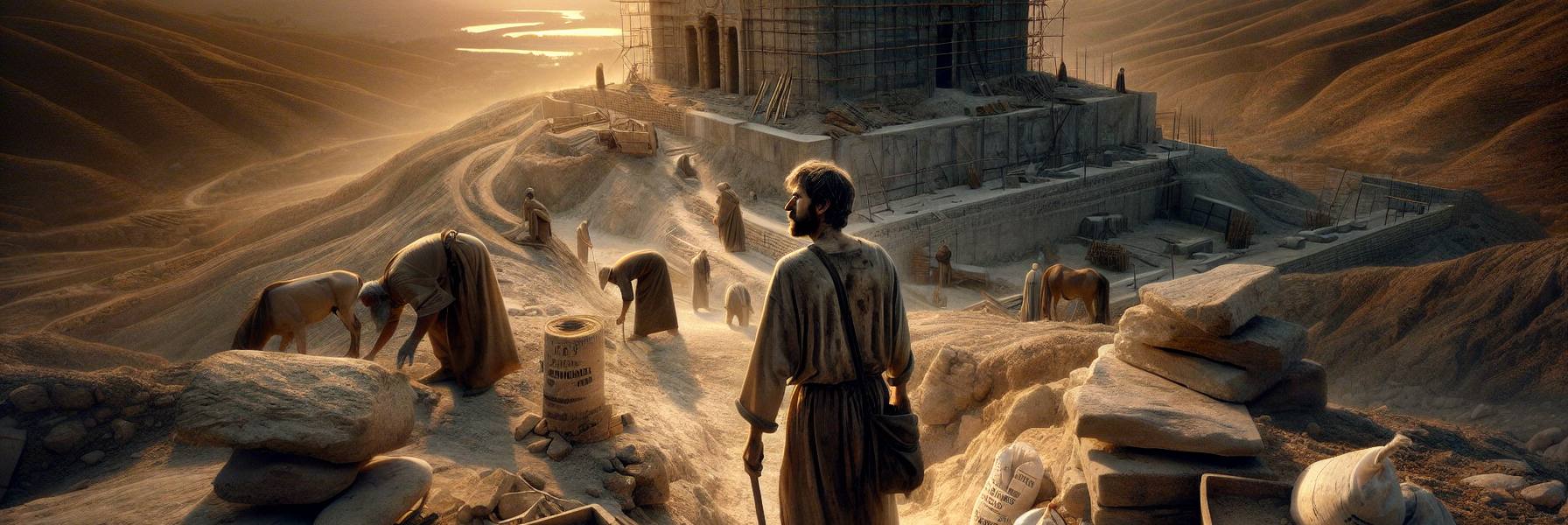 The ache in my shoulders was a dull, familiar companion. It was the ache of stones hauled, of mortar mixed, of a city being coaxed, piece by painful piece, from its own ashes. I, Zechariah, stood in the twilight of the building site they called the Temple. It was a pitiful thing, a foundation and a few courses of stone that seemed to huddle against the Judaean hills as if ashamed. The old men, the ones who remembered Solomon’s glory, would sometimes weep quietly as they worked, their tears cutting tracks through the dust on their faces.