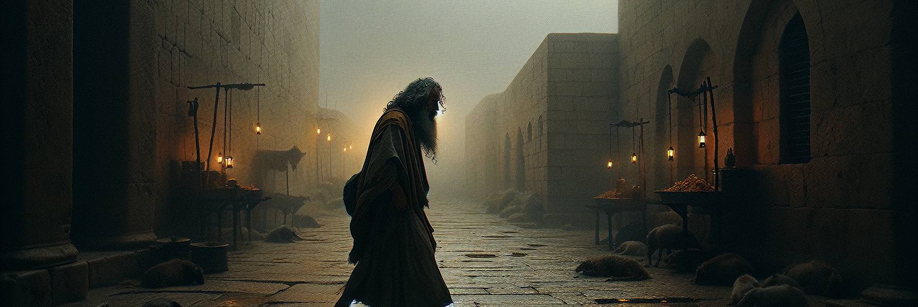 The dawn over Jerusalem was the colour of a dull bruise, grey bleeding into a tired yellow. Malachi felt it on his skin, this thin, tired light, as he made his way through the streets still shadowed and cool. The smell of last night’s refuse and old incense hung in the air. He moved without haste, a man carved from the same weary stone as the city walls, his thoughts a slow, deep river cutting through the bedrock of a complaint he could not shake.
