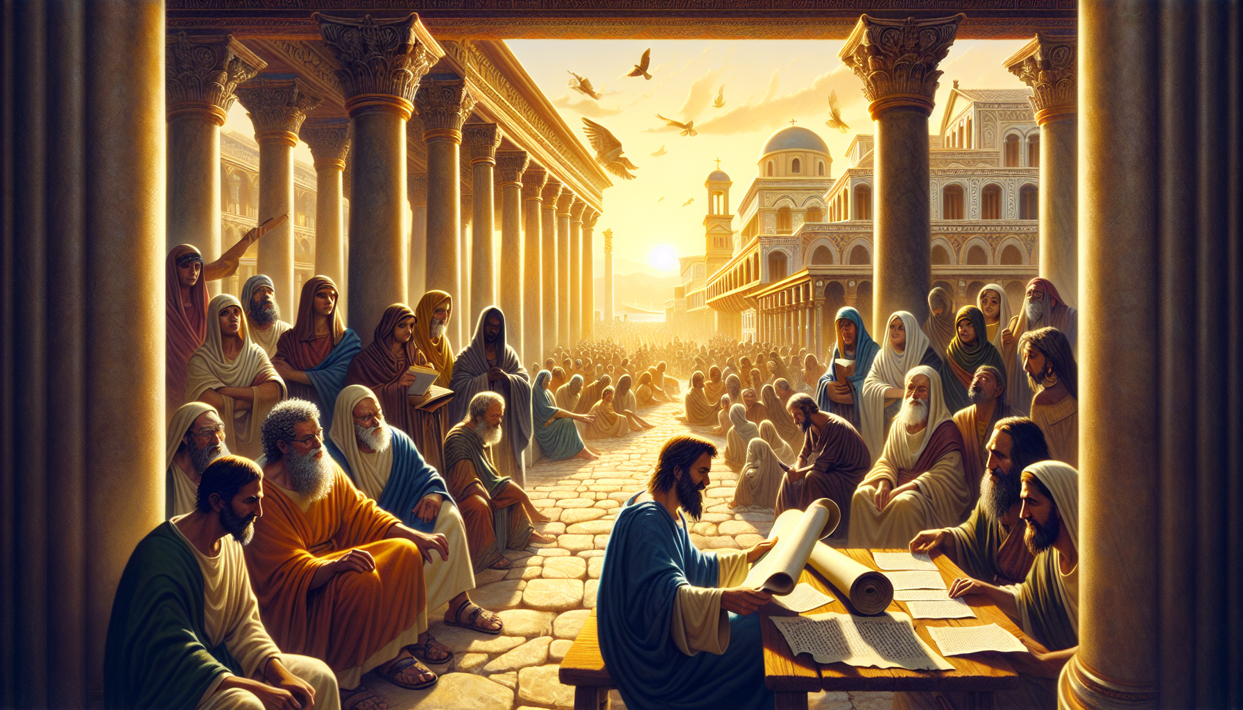 في مدينة كورنثوس المزدهرة، حيث تلتمع مياه البحر الأبيض المتوسط تحت أشعة الشمس الذهبية، اجتمع المؤمنون في بيت أحد الإخوة ليستمعوا إلى الرسالة التي حملها إليهم تيموثاوس، تلميذ بولس الأمين. كانت الأجواء مليئة بالترقب، فقد كانت هذه الرسائل بمثابة نور يهديهم في ظلمات العالم المضطرب.