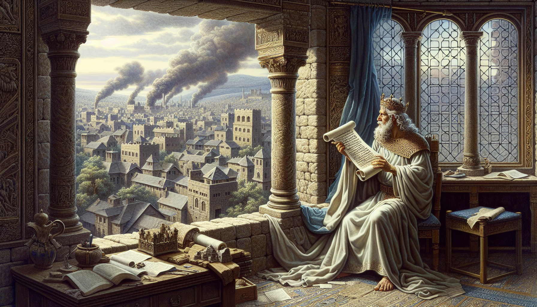 في تلك الأيام، عندما كانت ذكرى سليمان الحكيم لا تزال تهمس في حجارة الهيكل، لكن ظلال الأصنام قد امتدت في أروقته، جلس يوشيا الملك في قصره بالقدس. لم يكن هدوء الليل يريح نفسه، بل كان ثقيلاً كقطعة قماش بللتها الأمطار. تذكر ذلك اليوم، اليوم الذي وجدوا فيه الدرج، وقد كانت كلماته كالنار تأكل أعماقه. كلمات العهد، وكلمات الغضب أيضاً. كانت تذكرة من زمن مضى، زمن نسيته يهوذا، لكن الرب لم ينس.