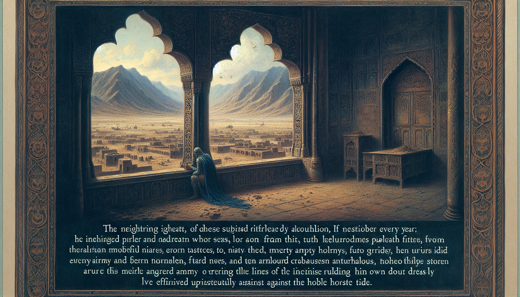كانت الكلمات تذكّر بأعظم أيام النبي، بأعجوبة صعود إيليا، بقوّة كانت تحمي المملكة. لكن القوة الآن تكمن في عينين غائرتين تنظران إلى ما وراء ستار العالم المنظور. التفت أليشع إلى الملك، وصوته كهمس الريح بين أغصان الزيتون: "خذ قوساً وسهاماً."