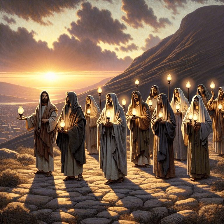 في إحدى الأيام، كان يسوع يجلس مع تلاميذه على جبل الزيتون، وكان يحكي لهم أمثالًا عن ملكوت السماوات. وكان الجو هادئًا، والنسيم يعانق...