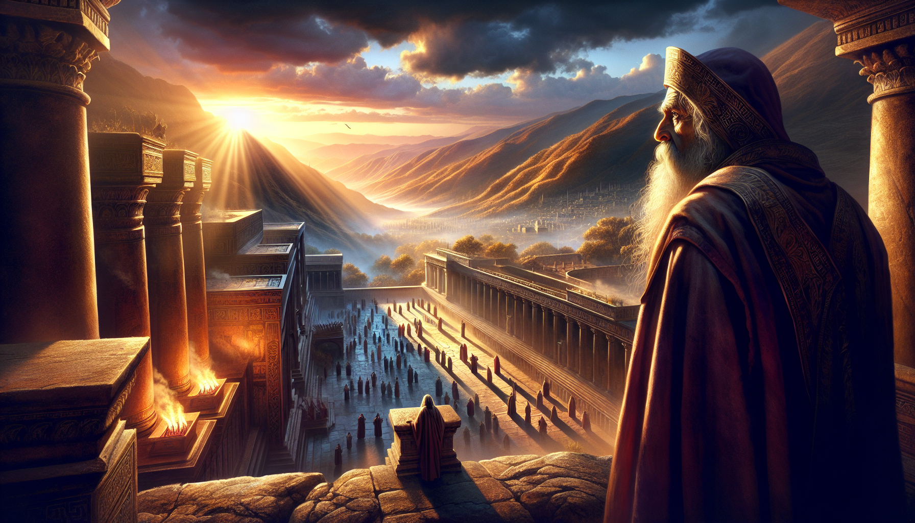 在犹大地的耶路撒冷,圣殿的香火依旧每日升起,祭司们穿着洁白的细麻布外袍,手捧祭物,行走在神圣的殿宇之间。然而,神的眼目洞察一切,祂看见的不只是外表的敬虔,更是人心的真相。