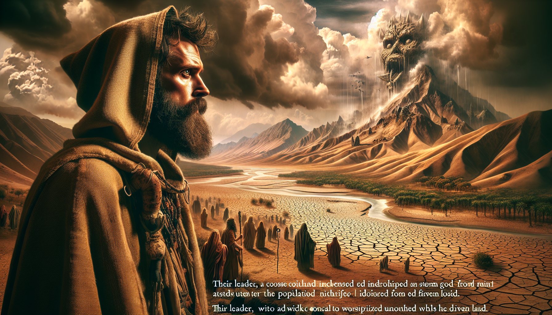 基列寄居的先知以利亚站在迦密山的岩石上,烈风卷动他粗糙的羊毛外衣,天空阴沉如铅,仿佛预示着即将到来的风暴。三年零六个月以来,以色列地滴雨未落,干裂的田地和枯死的橄榄树见证着亚哈王与王后耶洗别崇拜巴力的恶果。百姓在饥荒中挣扎,却仍徘徊在真假信仰之间。
