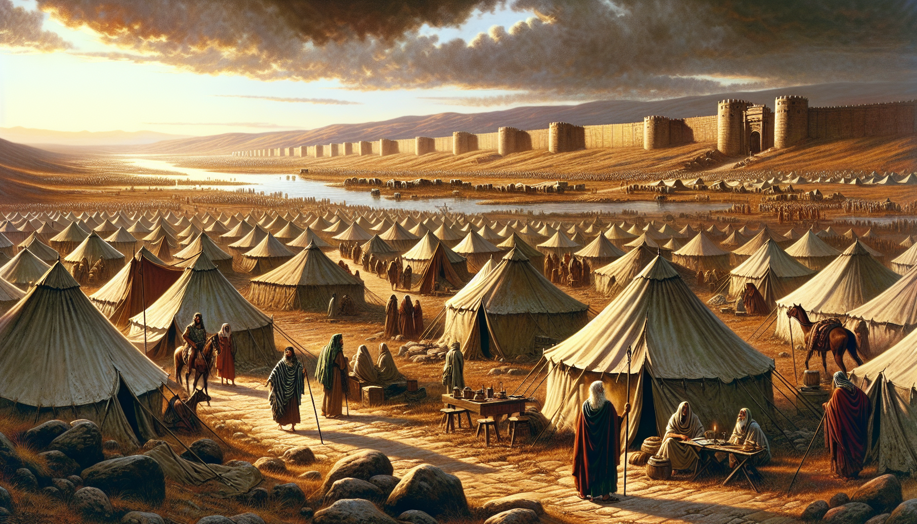 **约书亚记第五章:吉甲的神圣时刻** 以色列人在约书亚的带领下,终于渡过约旦河,踏入应许之地的吉甲平原。河水在他们脚下分开,正如当年红海为摩西分开一样,显明耶和华神...