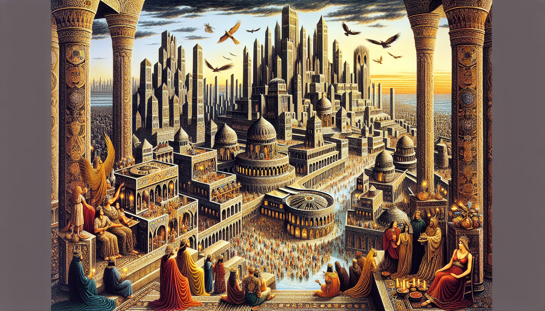 在古老的年代,巴比伦曾是世上最辉煌的城邦,高耸的城墙环绕着金碧辉煌的宫殿,宽阔的街道上商贾云集,各国的珍宝汇聚于此。它的权贵们身着华服,坐在高台上饮酒作乐,自以为无人能撼动他们的权势。然而,他们的骄傲与狂妄早已触怒了至高者——耶和华神。