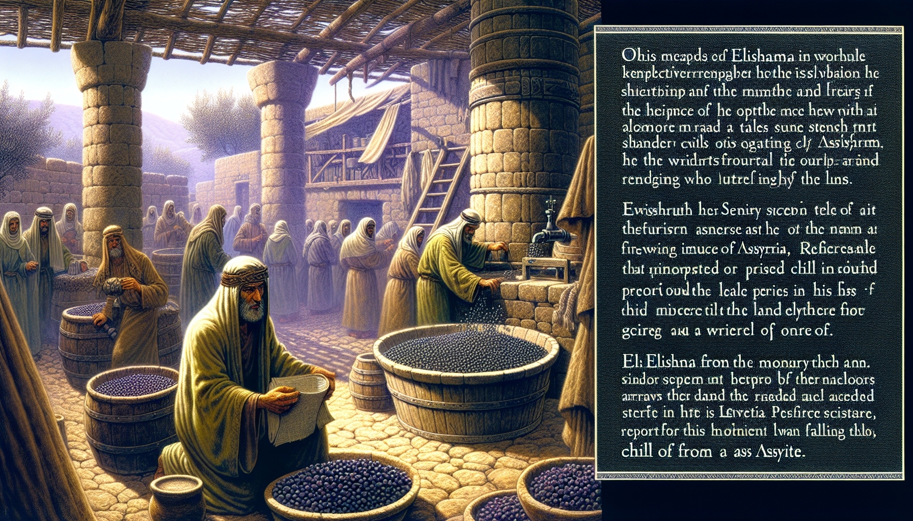 油灯在角落里忽明忽暗,舔舐着斗室墙壁上日益浓重的阴影。拿但业坐在门边,手里无意识地摩挲着一块光滑的河石,耳朵却捕捉着门外街上每一种声响——沉重的皮靴踏过碎石,远处隐约的哭喊,还有风穿过断壁残垣时那永不疲倦的呜咽。北方的亚述人像从山巅倾泻而下的铁流,已经吞没了西布伦和拿弗他利地,如今这铁与火的气息,正顺着约旦河谷一路南下,呛得人透不过气。