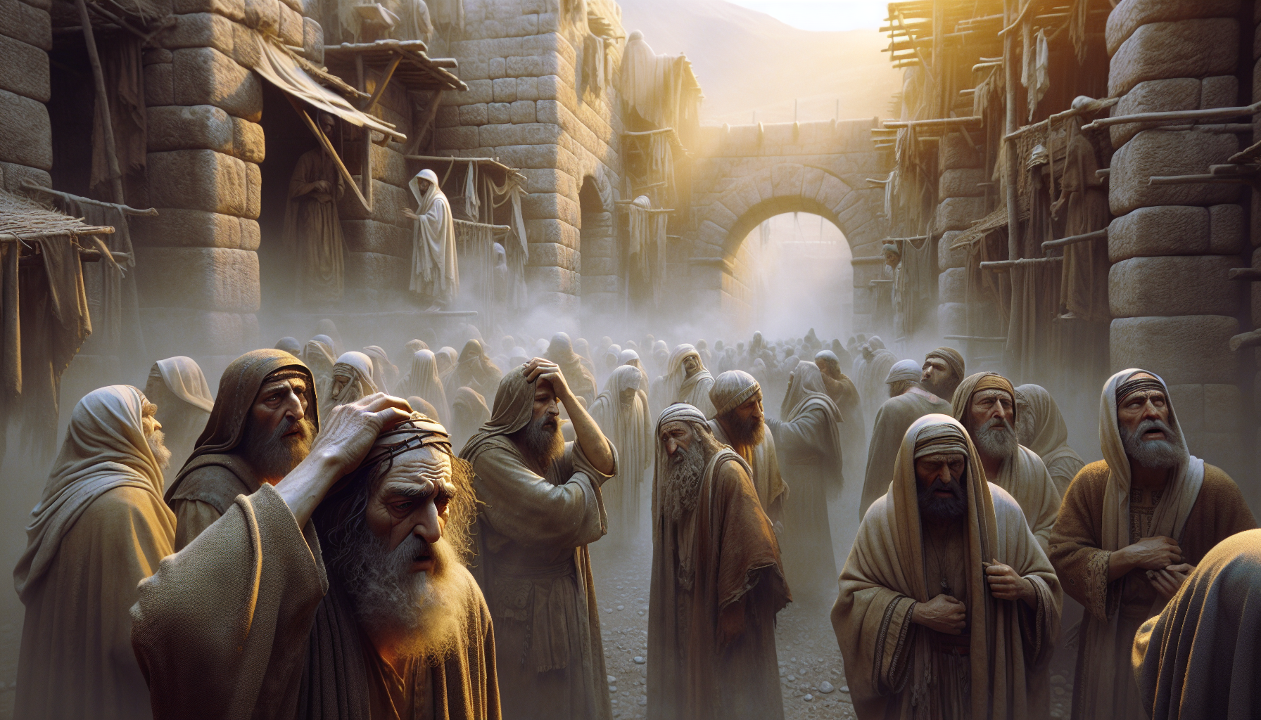 以西结抬起眼。他的目光平静,却似乎穿透了他们精心维持的恭敬,直抵内里。他没有立刻回答,只是缓缓卷起皮卷。棚内闷热,空气凝滞,只有苍蝇单调的嗡嗡声。他看见他们眼中闪烁的,不是对神话语的饥渴,而是对某种答案的索求——或许关乎归回的日期,或许关乎对敌者的诅咒,一种工具性的探问。他们姿态谦卑,心却仿佛隔着一层密不透风的幔子。