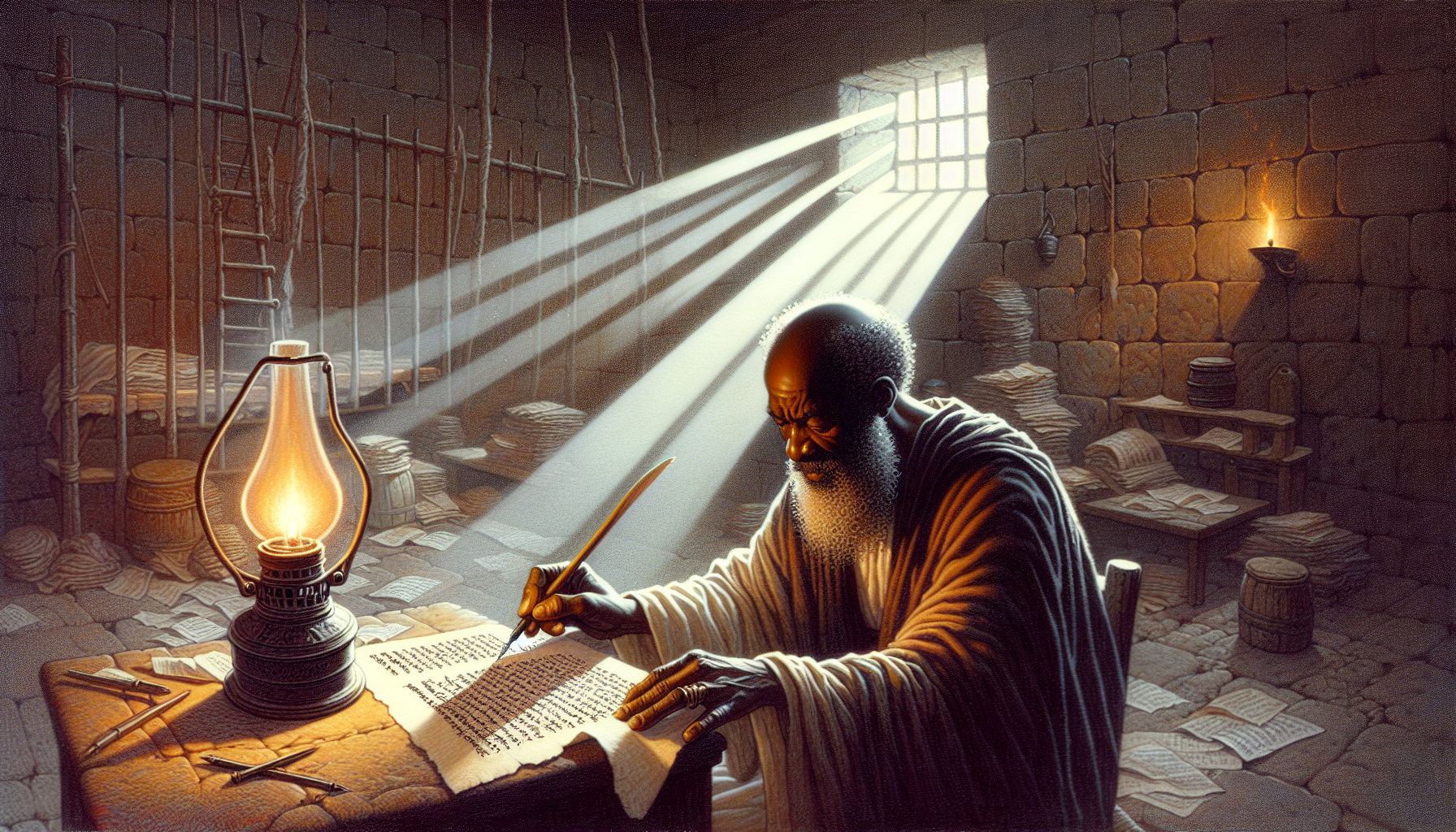 他记得被掳的日子。记得幼发拉底河畔的柳树,挂着他们沉默的琴。记得异族的神像在日光下闪着冷硬的光泽。但更记得的,是祖父在暗夜里低声的吟诵,那些句子像地下的暗河,从未断绝——“你们要称谢耶和华,因他本为善。”