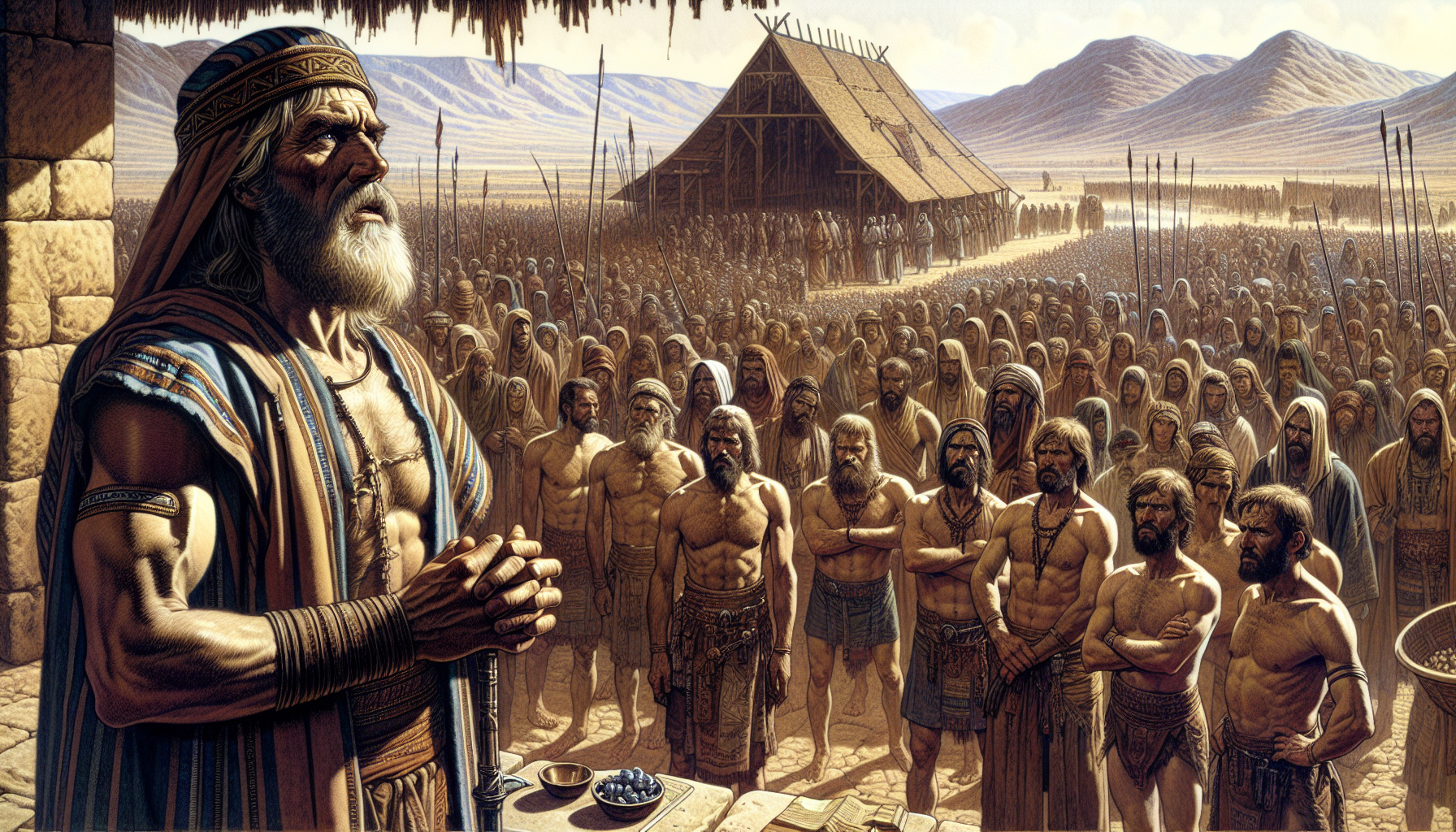 这话刺痛了所有人。他们浴血奋战,并非为了一片被排除在应许之外的土地。他们怕的,不是敌人的刀剑,而是后代被同胞在信仰上视为外人。沉默良久,一个决定在彼此交汇的眼神中成形。不是反叛,不是离弃,而是一个见证,一个样式——不是为献祭,而是为证物。