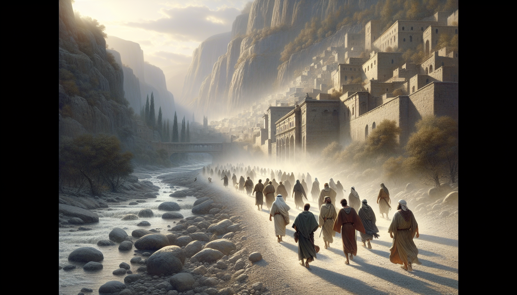 他们在一片缓坡上歇脚。下方山谷里,凯撒利亚腓立比的城池轮廓隐约可见,更远处,雪白的庙宇柱廊在阳光下刺眼。那是另一个世界,是刀剑、赋税与皇帝雕像的世界。而他们这群人,穿着沾满尘土的草鞋,怀里揣着干硬的饼。