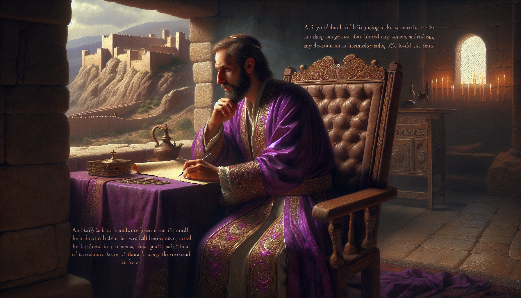 Il ferma les yeux. Dans le noir derrière ses paupières, les images défilaient, plus nettes que la réalité. Les messagers de Saül, aux yeux durs. Les trahisons, subtiles comme un poison lent. La sensation d’être pris au piège, toujours, comme si les cordes du Shéol elles-mêmes s’enroulaient autour de ses chevilles, tirant sans bruit. « Les liens de la mort m’avaient enlacé, les torrents de la destruction m’avaient épouvanté. » Les mots lui vinrent naturellement, un murmure rauque qui se perdit dans la pierre. Ce n’était pas une prière apprise. C’était le cri informe de ses entrailles, né des nuits de veille et de la peur qui vous tenaille le ventre.