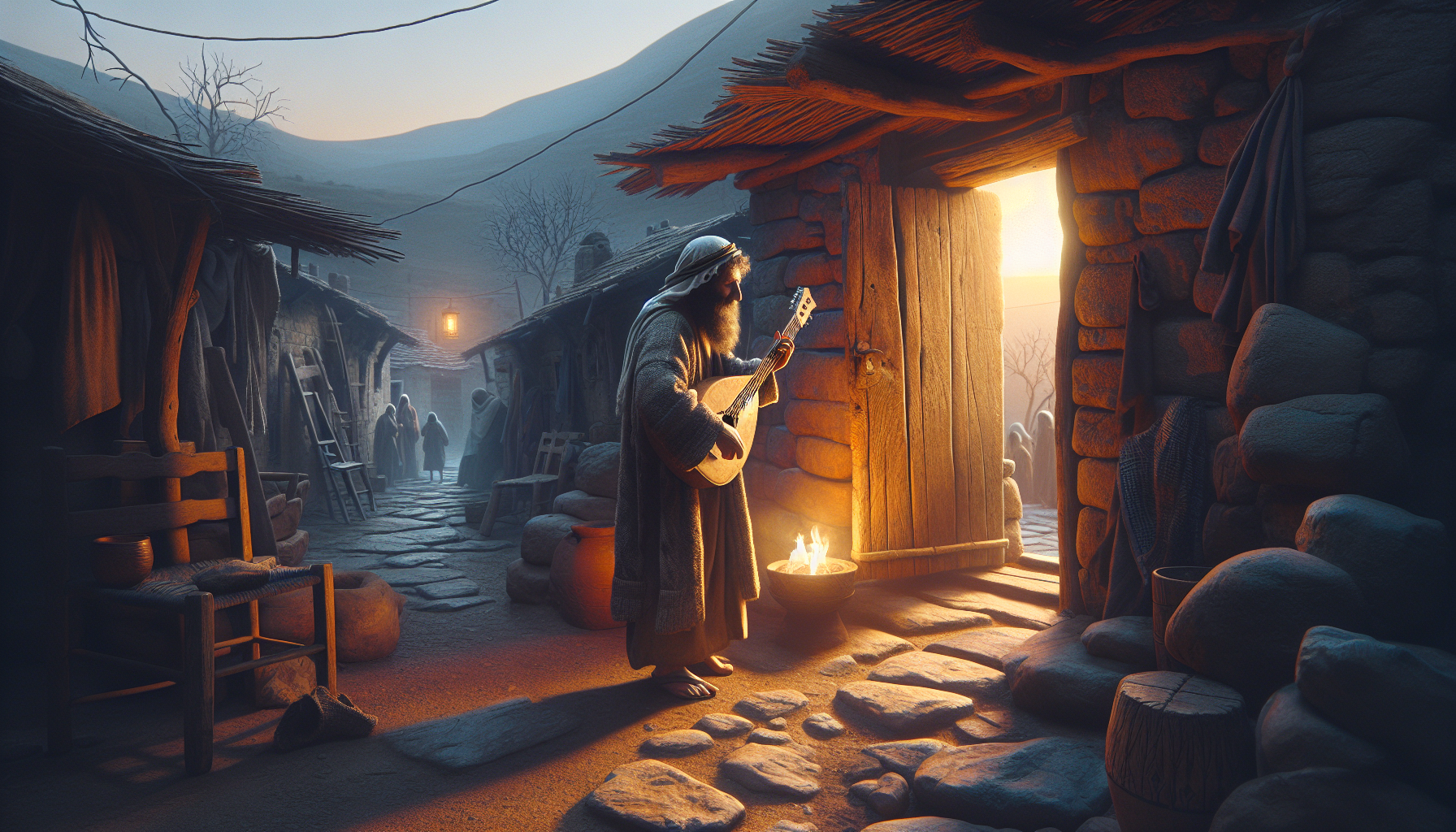 Il portait sa harpe contre lui, enveloppée d’un tissu rude. Ses doigts, calloux, en effleuraient le bois comme pour se rassurer. Ce soir, ce serait son tour de conduire le chant après l’offrande. Pas en tant que grand prêtre, ni même lévite de première ligne. Juste Éliah, fils de Yonadab, l’un de ces musiciens dont on ne retient pas le nom mais dont le cœur, parfois, soulève les âmes. On lui avait assigné le psaume nouveau. Le cent quarante-neuvième. Il le ruminait depuis l’aube.