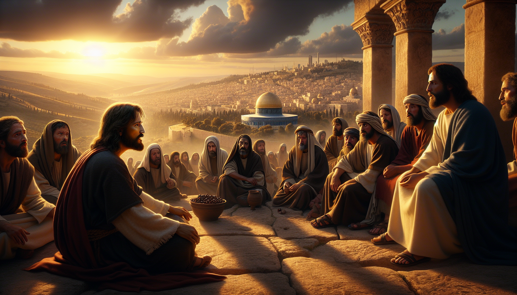 यीशु ने उन्हें जैतून पहाड़ पर अकेले में बुलाया और विस्तार से समझाना शुरू किया। उनकी आवाज़ में गंभीरता थी, और आँखों में भविष्य की उस भयानक घड़ी की छवि तैर रही थी।