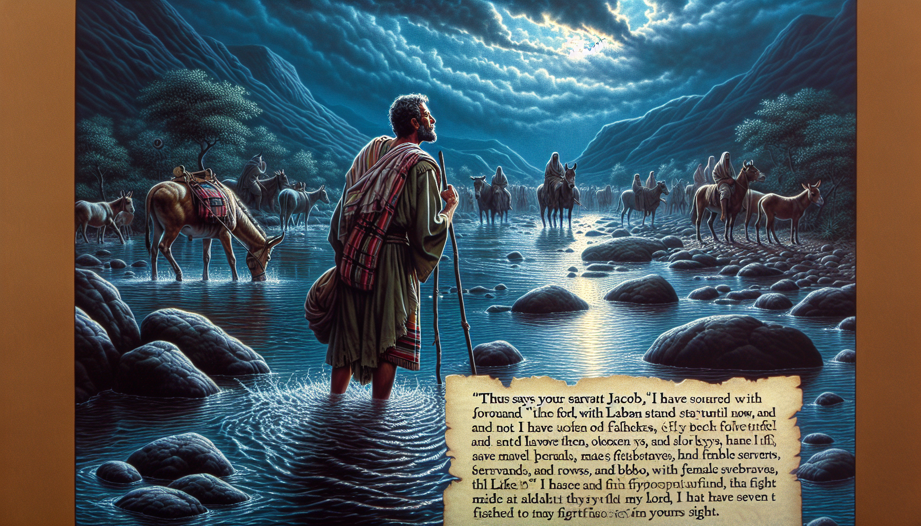 उस रात याकूब अकेला था। वह अपने परिवार, सेवकों, और सारी सम्पत्ति को आगे भेज चुका था, ताकि वह शांति से प्रार्थना कर सके। उसका मन भारी था, क्योंकि वह अपने भाई एसाव से मिलने जा रहा था—वही एसाव जिससे उसने बहुत पहले अपने जन्मrights और आशीष छीन ली थी। अब वह चार सौ सशस्त्र पुरुषों के साथ आ रहा था, और याकूब डर गया था। क्या एसाव उससे बदला लेगा? क्या उसके परिवार को नुकसान पहुँचेगा?