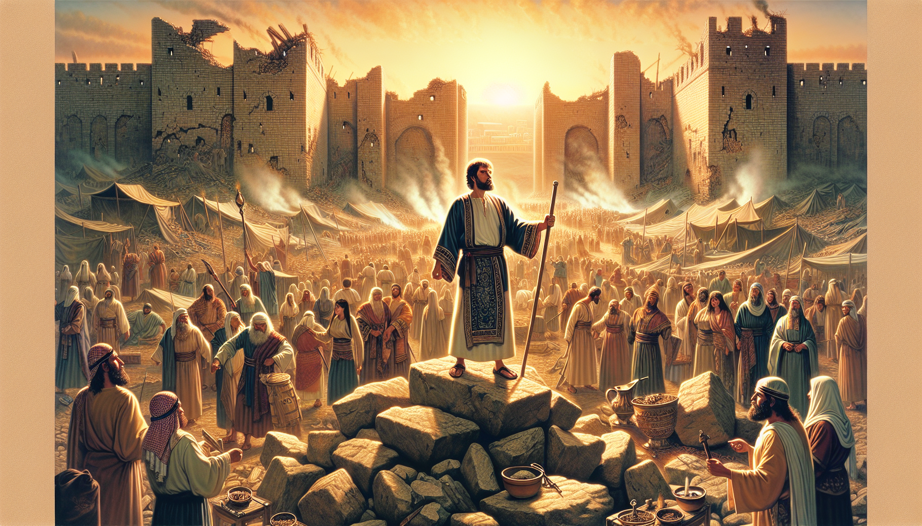 इस प्रकार, यरूशलेम की दीवारों का पुनर्निर्माण हुआ, और परमेश्वर के लोगों ने फिर से अपनी पहचान को स्थापित किया। यह कहानी हमें सिखाती है कि एकता, विश्वास और परिश्रम से हर बाधा को पार किया जा सकता है।