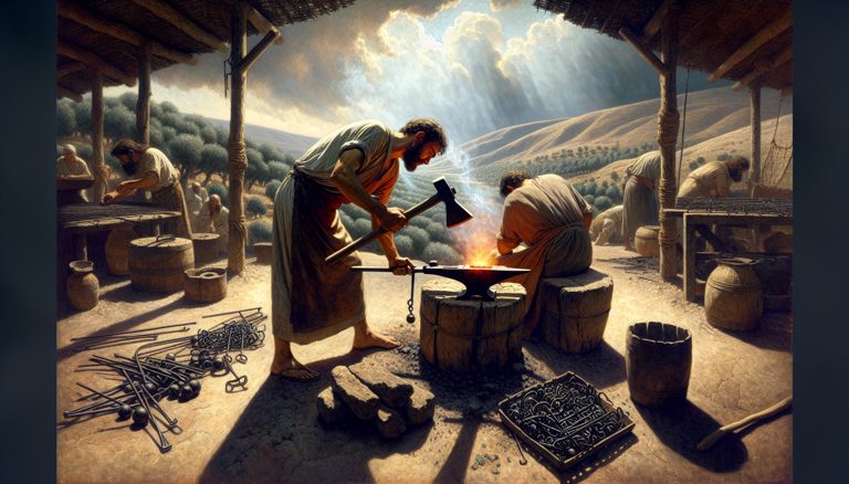 धूप चट्टानों पर तप रही थी, और हवा में धूल के महीन कण तैरते दिखाई देते थे। एलियाकीम अपने खेमे...