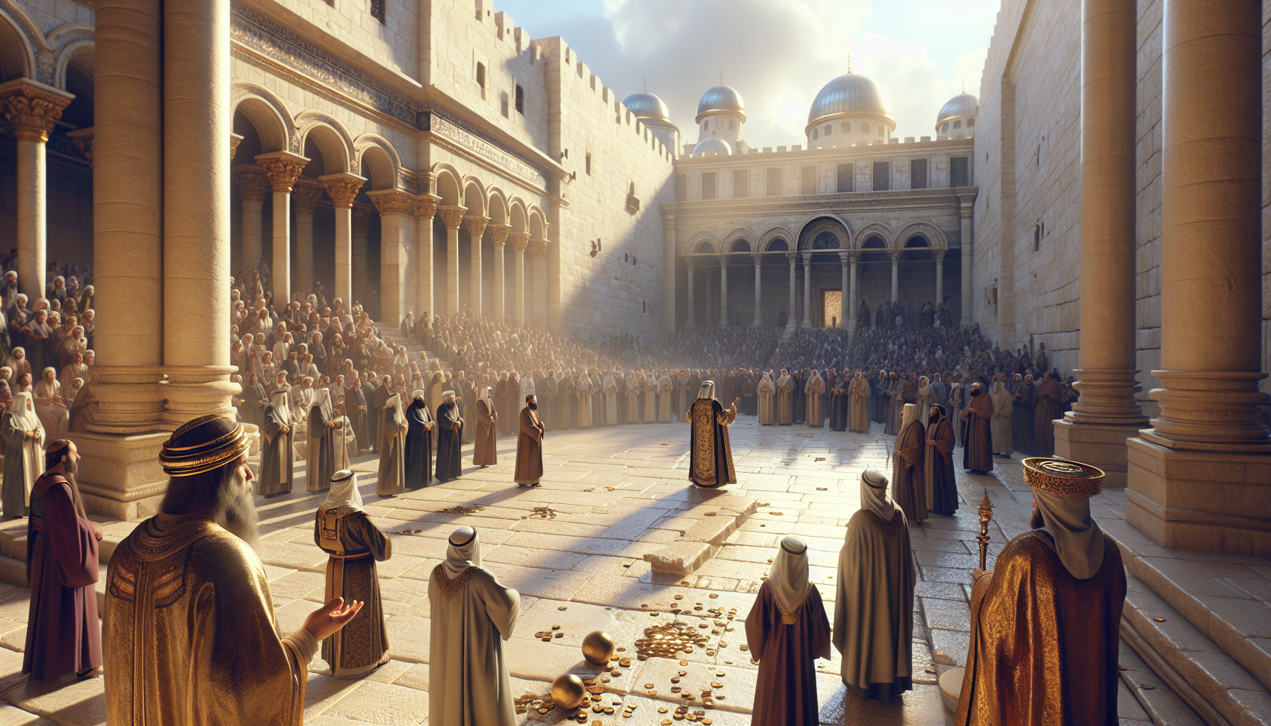 **ルカの福音書20章に基づく物語** エルサレムの都は、過越の祭りの準備で活気に満ちていた。人々は神殿の周りを行き交い、祭司たちは犠牲の動物を整え、商人たちは両替の台...