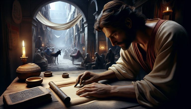 巻物の羊皮紙は、長年の手垢で縁が琥珀色に変わり、広げると乾いた草のようなかすかな匂いがした。エルアザルは硯に水を垂らし、固まった墨をゆっくりとすりつぶしながら、...