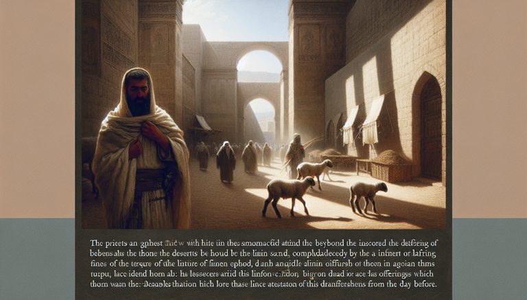 かつて、エルサレムの宮殿に影が長く伸びる頃、私は回廊の石畳を歩いていた。大理石の柱に夕陽が赤く染まり、遠くからは祭司たちの詠唱がかすかに聞こえる。私は王に仕える...