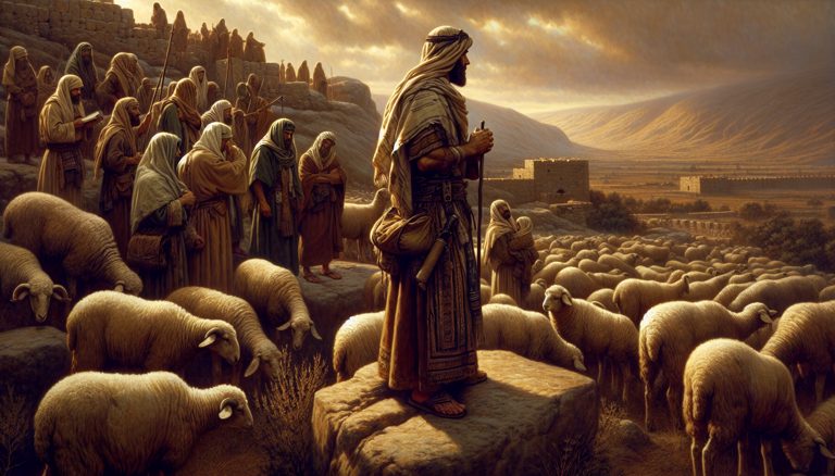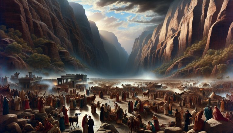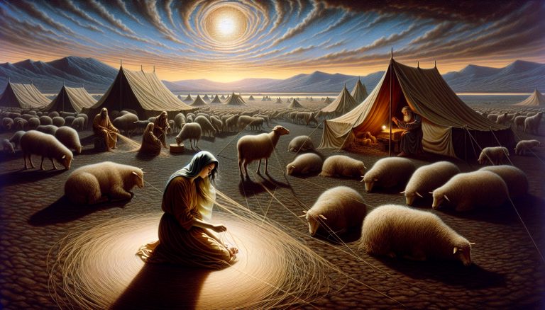 砂漠の風は、昼の灼熱が去った後でも、岩肌に残る熱を運び、亜麻の幕屋の周りをゆるやかに旋っていた。モーセは、幕屋の入口近くに立ち、目を閉じた。耳には、まだ、シナイ...