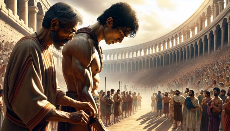 **ローマ人への手紙3章に基づく物語** 太陽が沈みかけたローマの街角で、ユダヤ人と異邦人が集まる小さな集会所に、人々が静かに座っていた。外では商人たちの声や馬車の音が...