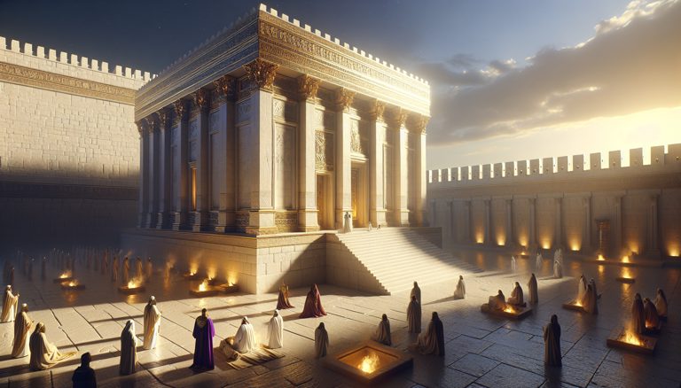 **ソロモン王と主の約束** 主がソロモンに現れた夜、エルサレムの宮殿は深い静寂に包まれていた。金色の燭台がゆらめく中、ソロモンは祈りをささげ、心を静めて神の声を待っ...