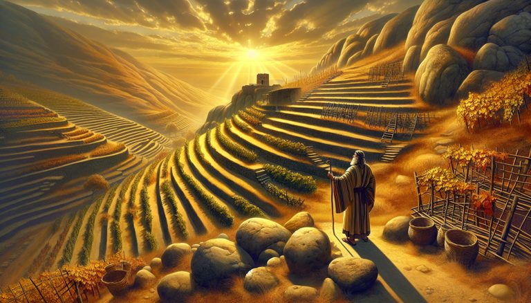 **イザヤ書5章:主のぶどう畑の歌** ある日のこと、預言者イザヤは神からの深い啓示を受け、イスラエルの民に向けて一つの歌を歌い始めた。その歌は、愛と裁き、希望と警告が...
