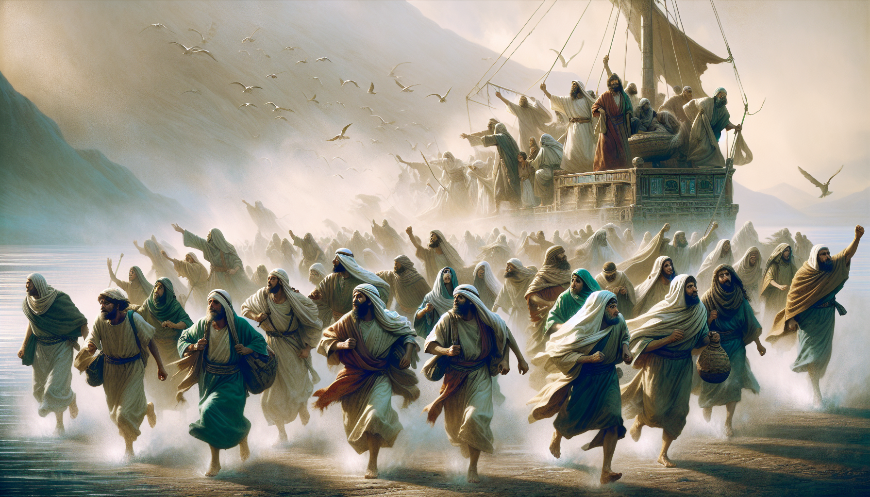 Mas o mar… ah, o mar. No dia seguinte, alcançamos suas margens. E era um monstro. Uma extensão de água barrenta e furiosa, rugindo com uma voz que abafava todos os nossos temores. O exército de Faraó era uma nuvem de poeira atrás de nós; o mar, uma muralha intransponível à frente. O desespero era um gosto amargo na boca. E então Moisés estendeu o cajado.