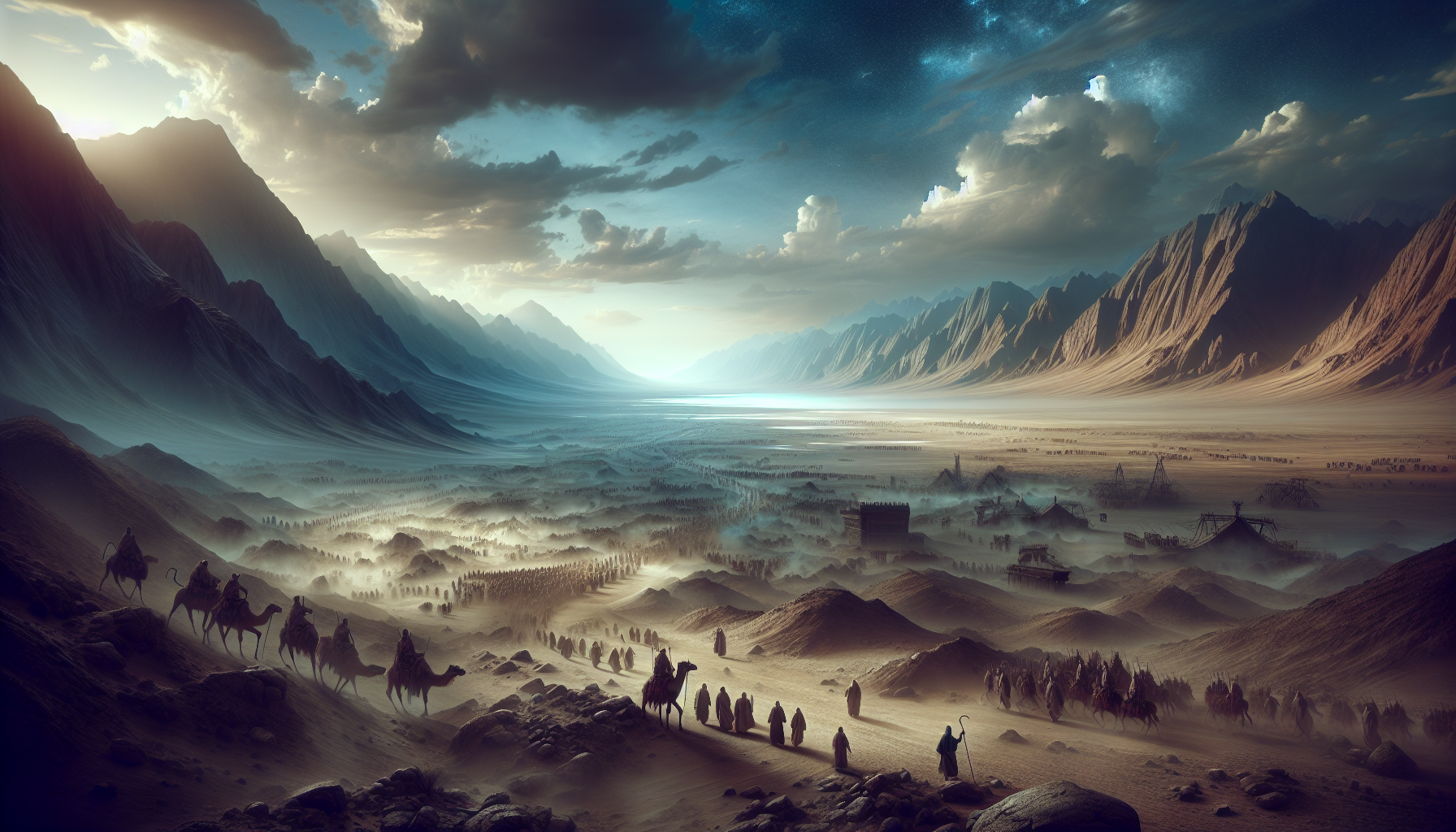 Naquela noite, ao redor das fogueiras, ninguém cantou. Conversavam em voz baixa, quase sussurrando. Olhavam para a montanha, agora silhueta escura contra o céu estrelado. Algo havia mudado para sempre. Eles não eram mais apenas um bando de escravos fugitivos. Tinham uma lei. Tinham um Deus. E, aos pés do Sinai, começavam a entender, com um respeito que doía e alegrava ao mesmo tempo, o peso imenso e a doçura misteriosa de serem um povo.